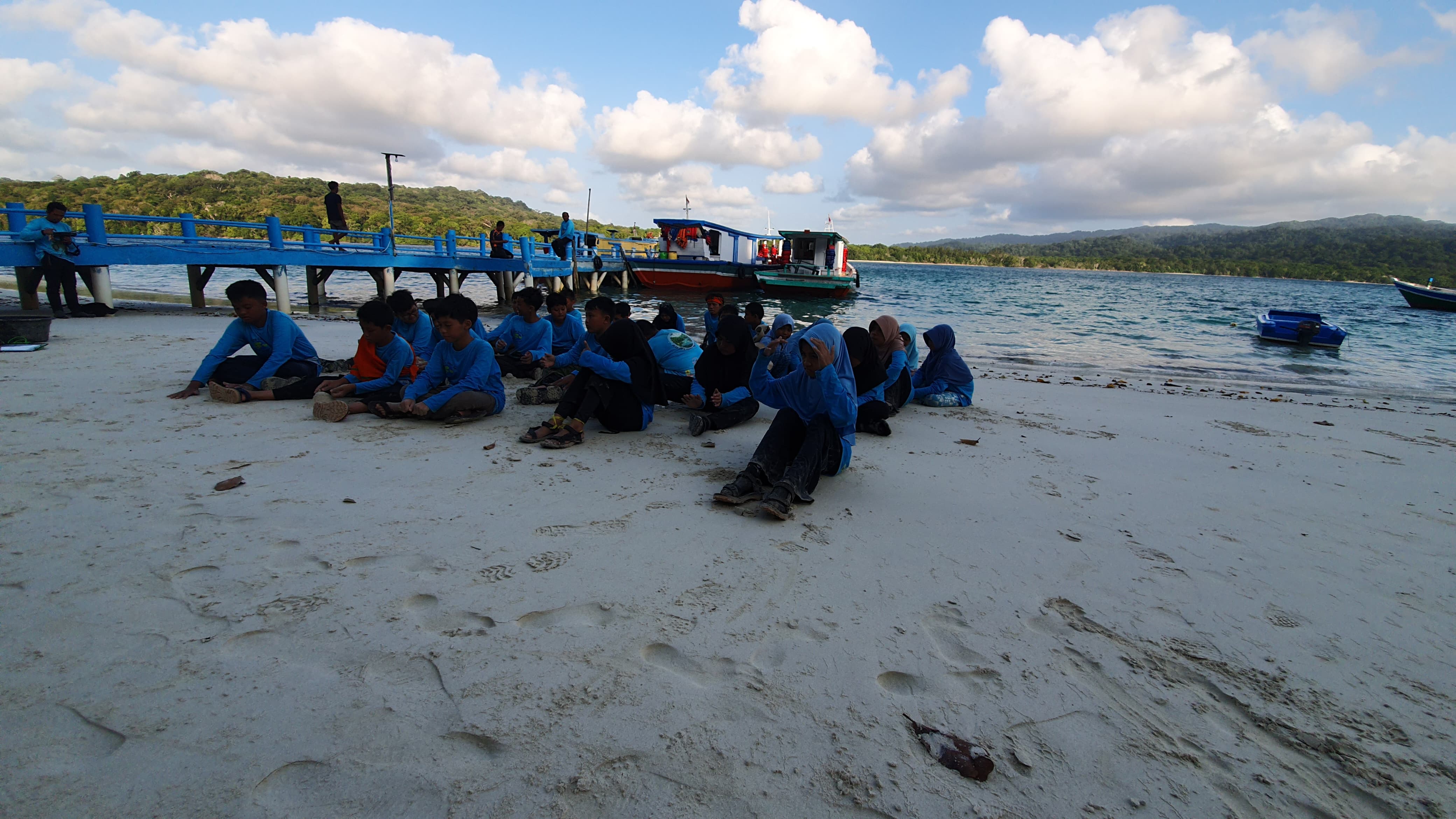 Didampingi guru dan pembimbing dari petugas TNUK, teman-teman SA Depok terlihat senang dan antusias dalam mengikuti kegiatan belajar dan proses transplantasi karang ini.