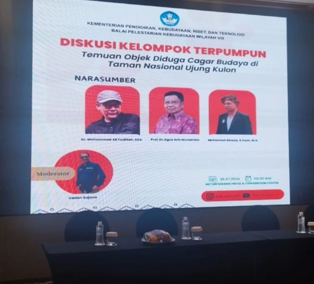 Dalam FGD disampaikan bahwa terdapat benda cagar budaya berupa 3 kepala raksasa, 3 pilar, 1 undakan dan 1 Yoni yang berada di dalam kawasan TNUK. Diperkirakan dugaan cagar budaya ini dibuat pada masa Hindu-Buddha klasik abad ke-7. Selanjutnya, Pihak BPK Wil. VIII, Kemendikbudristek-RI atau BRIN akan melakukan penelitian lebih lanjut untuk diajukan sebagai benda cagar budaya.